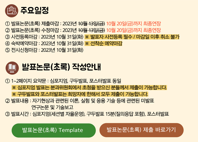 ■ 전시비 포함내역 - 전시 공간 사용료, 전시 부스 세팅비 ※부스는 기본 테이블 세팅으로 제공 되오니, 전시에 필요한장비들은 직접 준비해 오셔야 합니다. - 부스 당 2인 무료 등록 (비회원 등록비 330,000원) ※등록비 포함 내역 : 발표장 입장, 프로그램북, (만찬, 1회 점심쿠폰, 커피서비스 등은 운영 시) 제공
